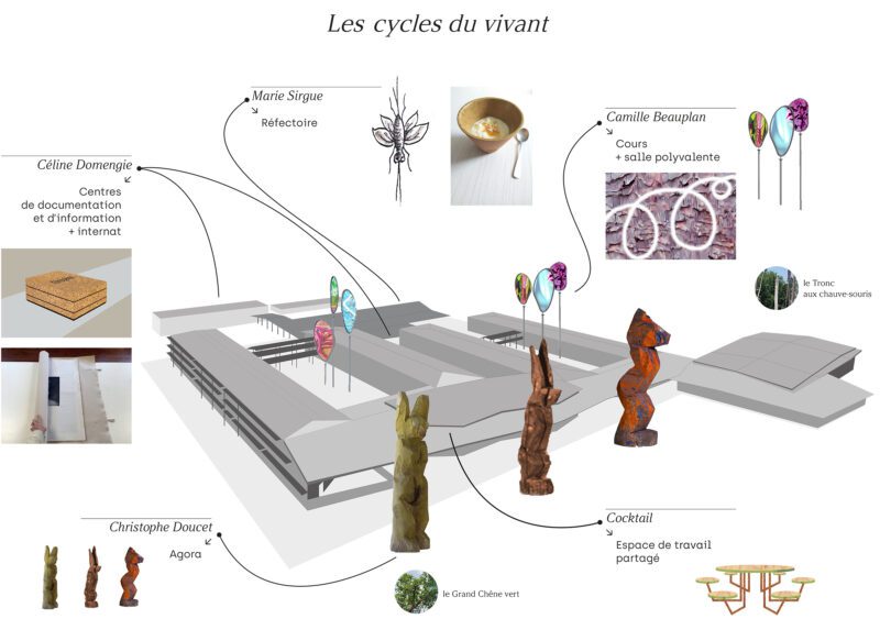 En mai 2025, l'artiste Camille Beauplan propose aux élèves d'une classe de seconde du lycée du Barp de réaliser des croquis basés sur l'observation de ce nouveau bâtiment et de son environnement forestier puis de les mettre en peinture et de réfléchir à un accrochage collectif dans le cadre du 1% artistique.