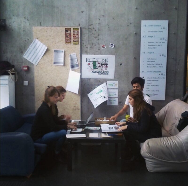 L’Ambassade des Communs est une œuvre collective qui cultive la fiction dans la réalité et en extrapole le devenir utopique. Claire Dehove et les Nouveaux Commanditaires sont les initiateur·ices de l’ADC et les ambassadeur·ices de référence. L’ADC compte s’implanter durablement et engager un processus de recherche-action menée pour et par les usager·es, qu’ils·elles soient étudiant·es, chercheur·ses, professeur·es, artistes, technicien·nes, personnel administratif et autres employé·es de la MDA. Durant l’année universitaire 2015-2016, WOS/agence des hypothèses a ainsi conçu une programmation d’interventions, d’événements, de moments festifs, de rencontres et d’échanges qui ont été déclinés sous différentes formes :